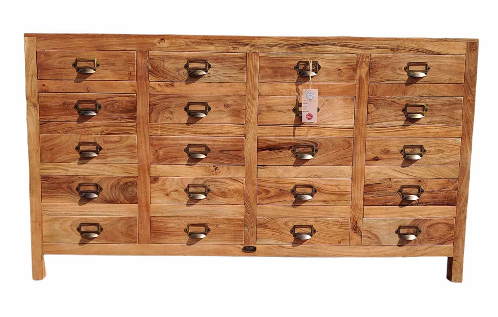 Hand Crafted solid Acacia wood 20 drawers sideboard. Industrial handles are stylish.