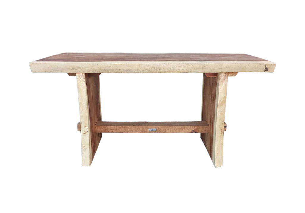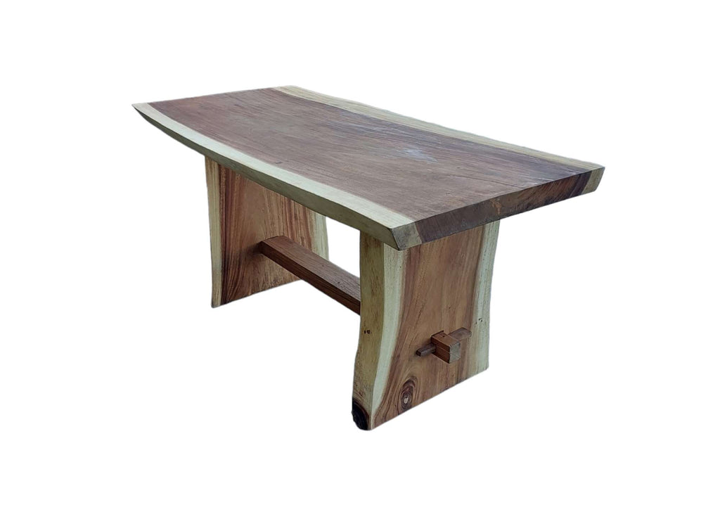 Forestville is solid wood slab dining table hand crafted in Indonesia from solid Suar wood. These trees grow in Indonesian Rainforests and wood is sustainable also inspected & Monitored by Government of Indonesia. Table is hand crafted and featuring live edges.