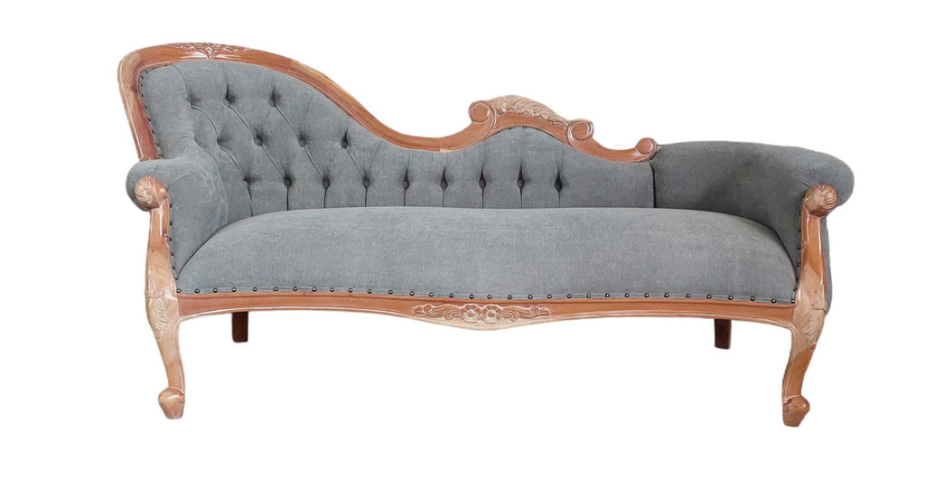 The LOUIS SINGLE ENDED CHAISE showcases expert hand-carved craftsmanship, exemplifying superior mastery in its design. Utilizing traditional tools and inherited techniques, this chaise is meticulously carved from solid mahogany wood, resulting in a strong and durable piece. Its joints are skillfully crafted for long-lasting stability and durability. Mahogany wood carved chaise has aesthetic appeal and featuring curving & waving back. Louis chaise has been upholstered using High Density Foam and has a deep buttoned back rest admiring the beauty of chaise.