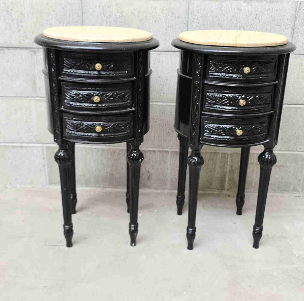 Ease note these are old nightstands in New life been restored painted and new Tops so there may be some irregularities for their age adds to Character